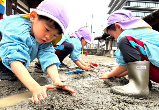 幼児期にしっかりと遊び込む経験が学童期における集中力・学習力、人を思いやる温かな気持ちや落ち着いた心を育むと信じて子どもたちと向き合っています。