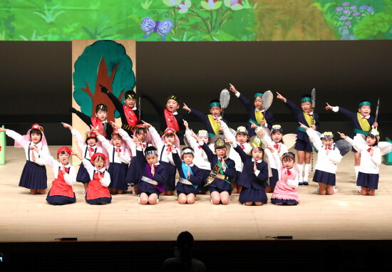 運動会・発表会・行事を仏様のお誕生日の花まつりなどの仏教行事や、お餅つきなどの年中行事、田植えやみかん狩りなど自然にふれる経験も保育の一環として行っています。運動会と発表会は、「練習を頑張る」という日常の保育とは違った経験をする大切な行事です。合奏・合唱や体操・ダンスなど、得意な子どもも苦手な子どもも、それぞれの子どもたちがステップアップできるように教諭も情熱と愛情をそそいで頑張ります。楽しいだけじゃない、苦しいだけじゃない、そんな行事の経験も大切です。